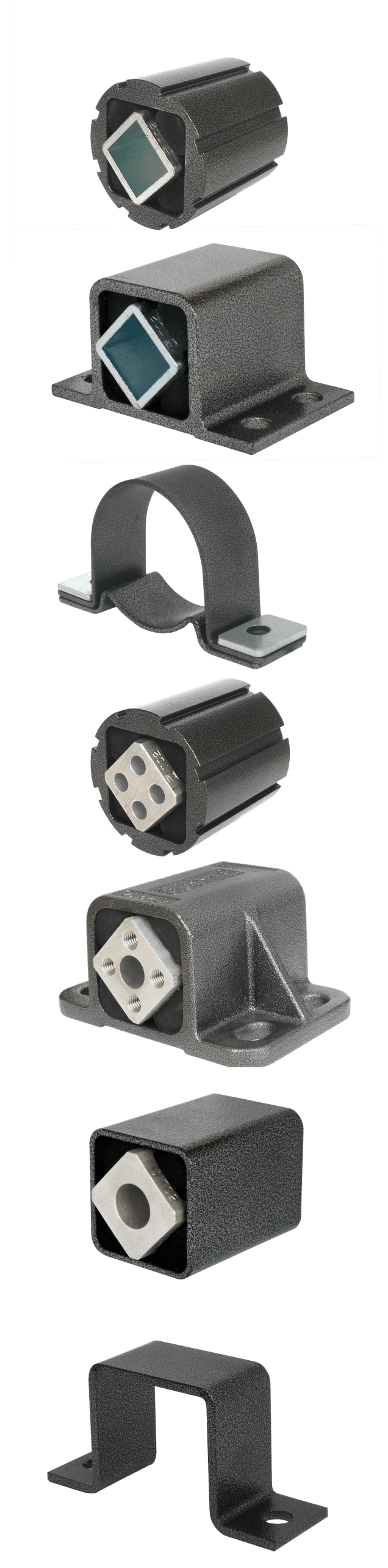Vulcanised rubber-metal bonding in combination with wear-resistant compounds ensures a long service life even in the event of severe torque fluctuations. The dampers are insensitive to dirt and highly resistant to water and UV radiation.